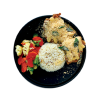 Juicy chicken thighs, ready to be fried or grilled! Chicken thighs are marinated with our chefs' secret recipe, making sure every bite you take is a flavourful one. Dish is served with a side of your choice.